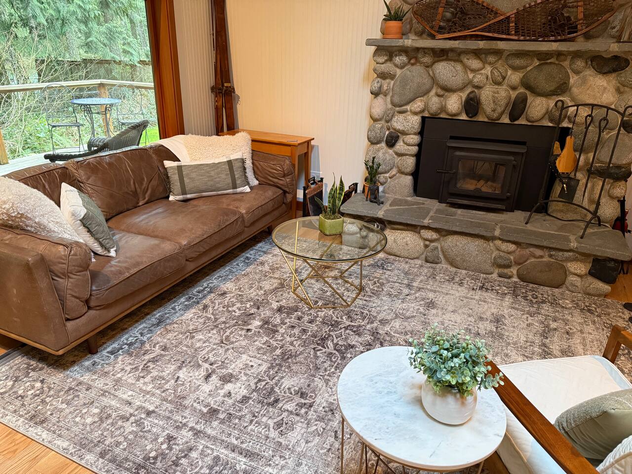 Welcome to the Kayak Cabin on the Middle Fork. Tucked along the beautiful Middle Fork of the Snoqualmie River, this cozy cabin offers the perfect mix of rustic charm and outdoor adventure. Whether you're looking to unplug and unwind or spend your days exploring nearby trails, rafting, mountain biking, or fly fishing right out the cabin door, this spot has you covered. Relax by the fire pit with six Adirondack chairs—perfect for s’mores and a glass of wine. Wake up to the sounds of the river, enjoy coffee on the deck, and spend your days hiking some of the region's best trails. Both Mt. Si and Little Si trailheads are just 2-minute drive away, offering sweeping views and rewarding climbs. Regional hiking books on site. Inside, the cabin is warm and inviting with everything you need for a peaceful stay. ** Ideal for couples, small families, or solo adventurers looking to recharge in nature. Be aware that the third sleeping space is upstairs in the loft, behind a privacy wall, accessed by a fairly steep ship’s ladder which may not be appropriate for children or those with physical limitations. Please plan accordingly. We offer onsite EV charging for an additional charge, please let us know when you book if you’re interested in this amenity.