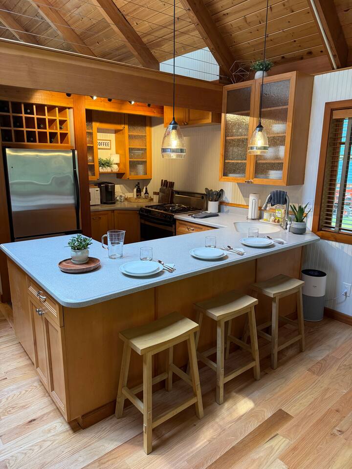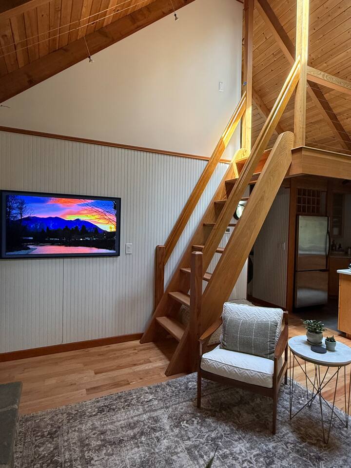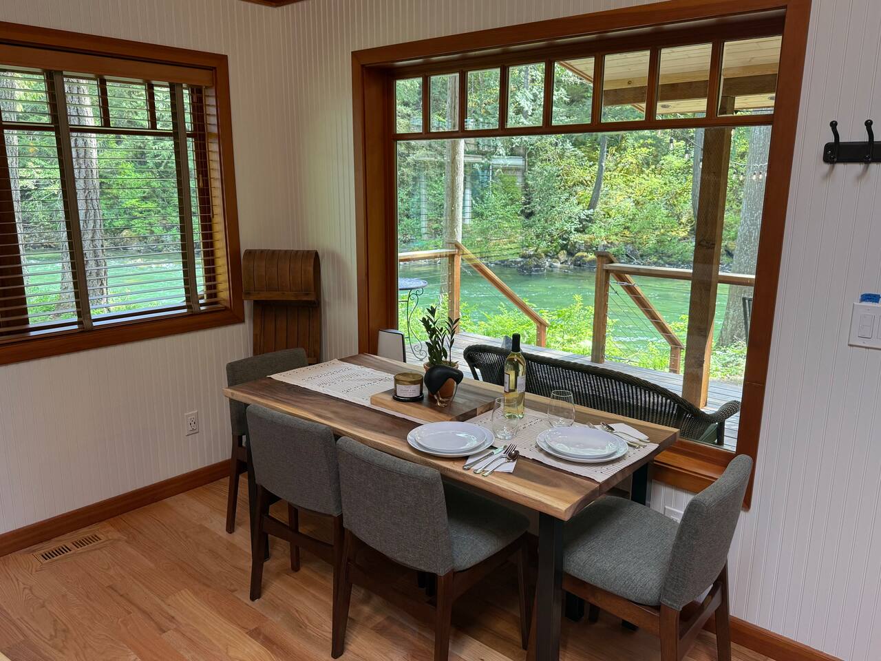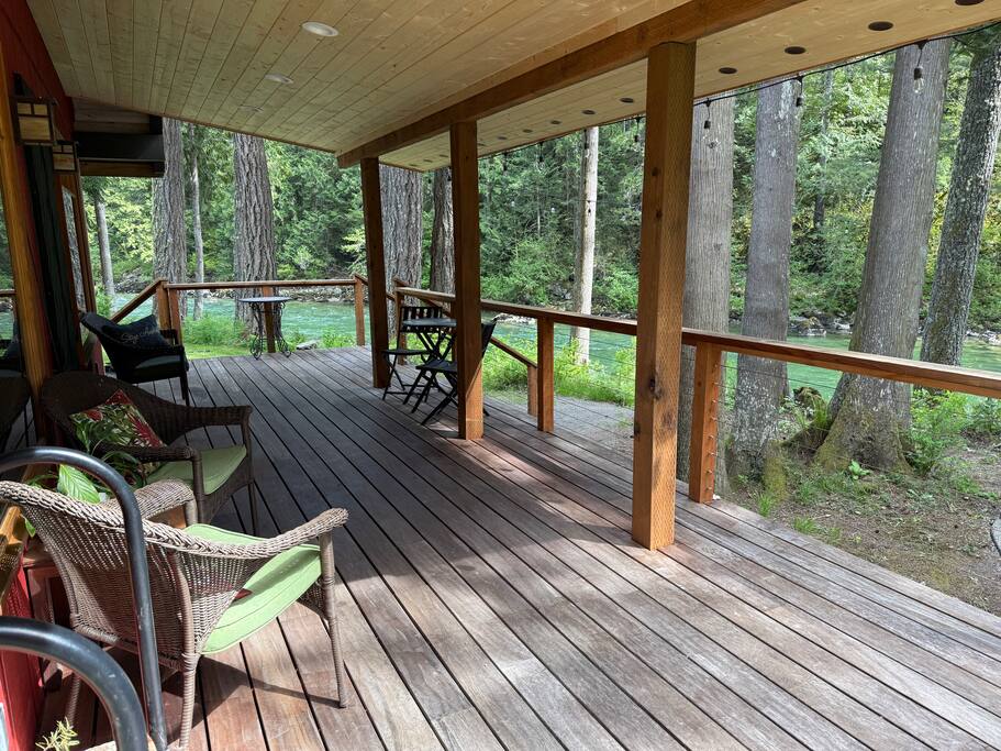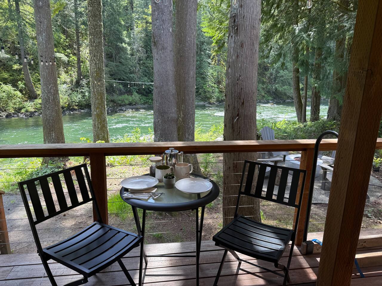 The full cabin! Located on the beautiful middle section of the middle fork of the Snoqualmie River. This section is aptly referred to by kayakers as the “Middle Middle.” Our banks are some of the best in the local area for catch and release fly fishing, so feel free to bring your rod and flies! Please note that the cabin has sleeping arrangements for six. That said, please review photos and descriptions, and make an informed decision. The Kayak Cabin is a luxurious space for two, cozy for four, and decidedly snug for six. We have opted to allow up to six guests to make the experience accessible to a wide range of guests. The cabin’s riverside location and the steep ship’s ladder to the loft may not be appropriate for small children. Host must be made aware of and pre-approve guests under 12 at time of booking. Parents must maintain close supervision of children at all times. Steps to porch, small bathroom, and steep ladder may make this accommodation inappropriate for people with physical limitations. Please feel free to reach to host out with questions or concerns.
